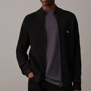 Cardigan uomo zip intera in lambswoll moulinè taglie regolari