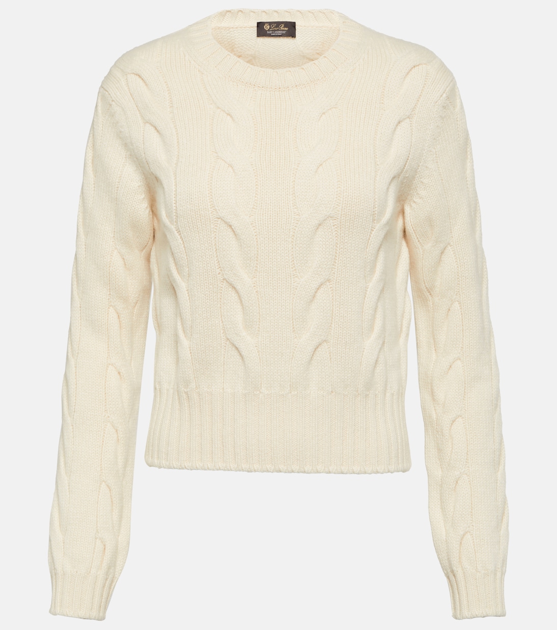 Pullover in cashmere a trecce in Bianco Loro Piana | Mytheresa