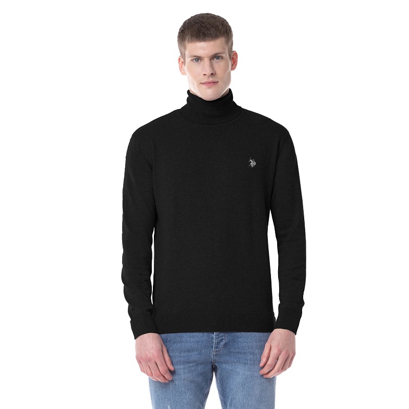 Maglia collo alto Uomo U.S. Polo Assn. Dolcevita Jonn 66568 Nero Maglione in cotone e cashmere con logo I2023