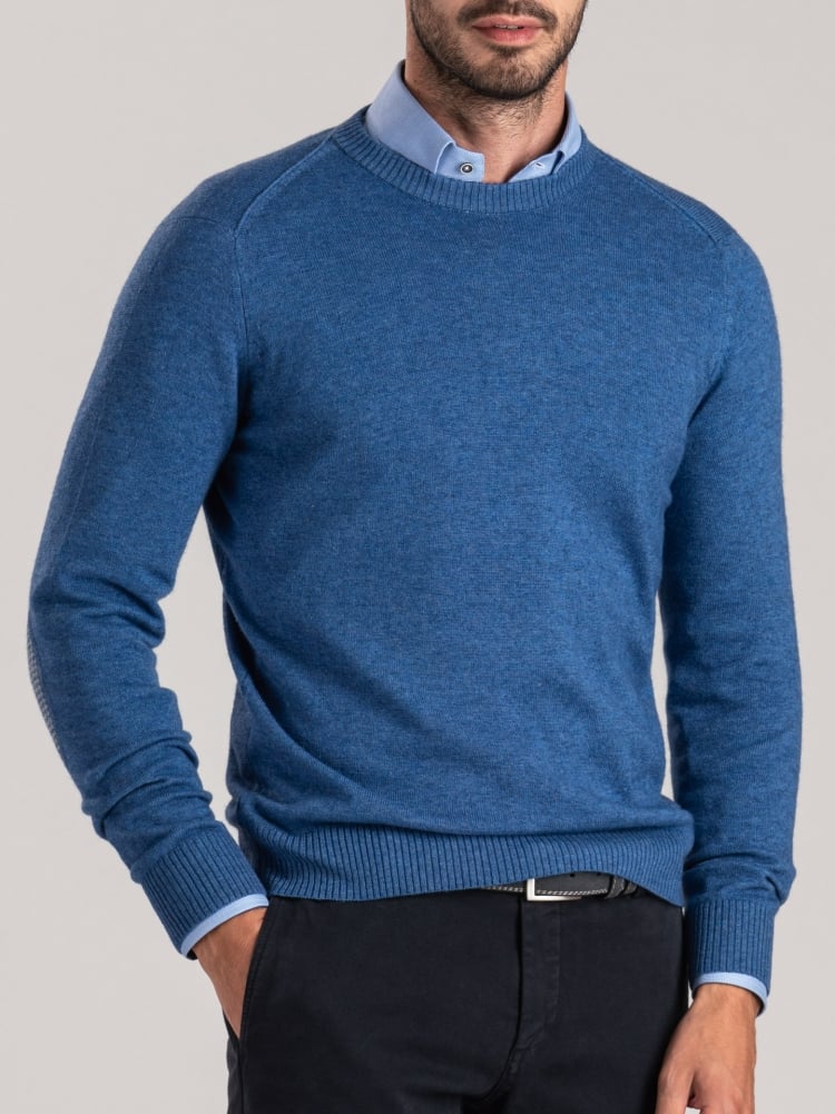 Maglia uomo girocollo con toppe misto cashmere Invidia 1973