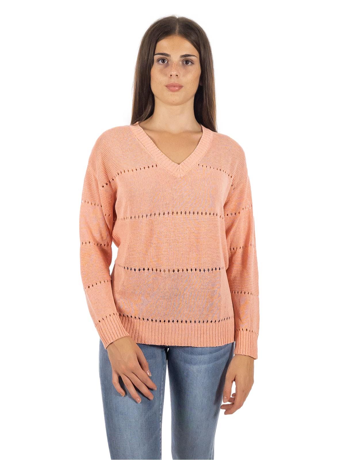 Maglia Manica Lunga In Cotone Da Donna Scollo A V Traforata