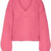Maglione rosa fragola in lana grossa mohair Volpato