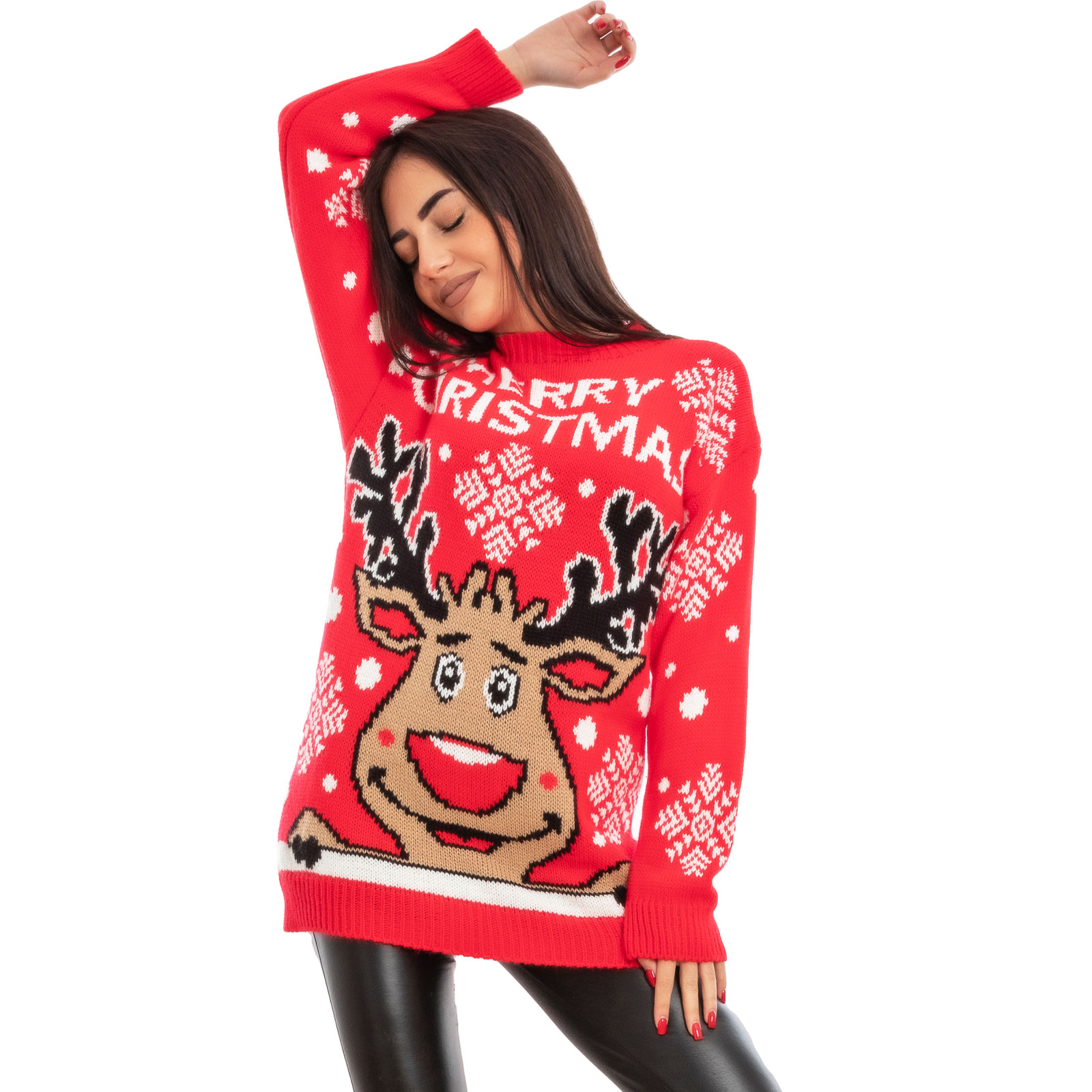 Maglione donna lungo pullover Natale RENNA feste Natalizio TOOCOOL VB 3231 | eBay
