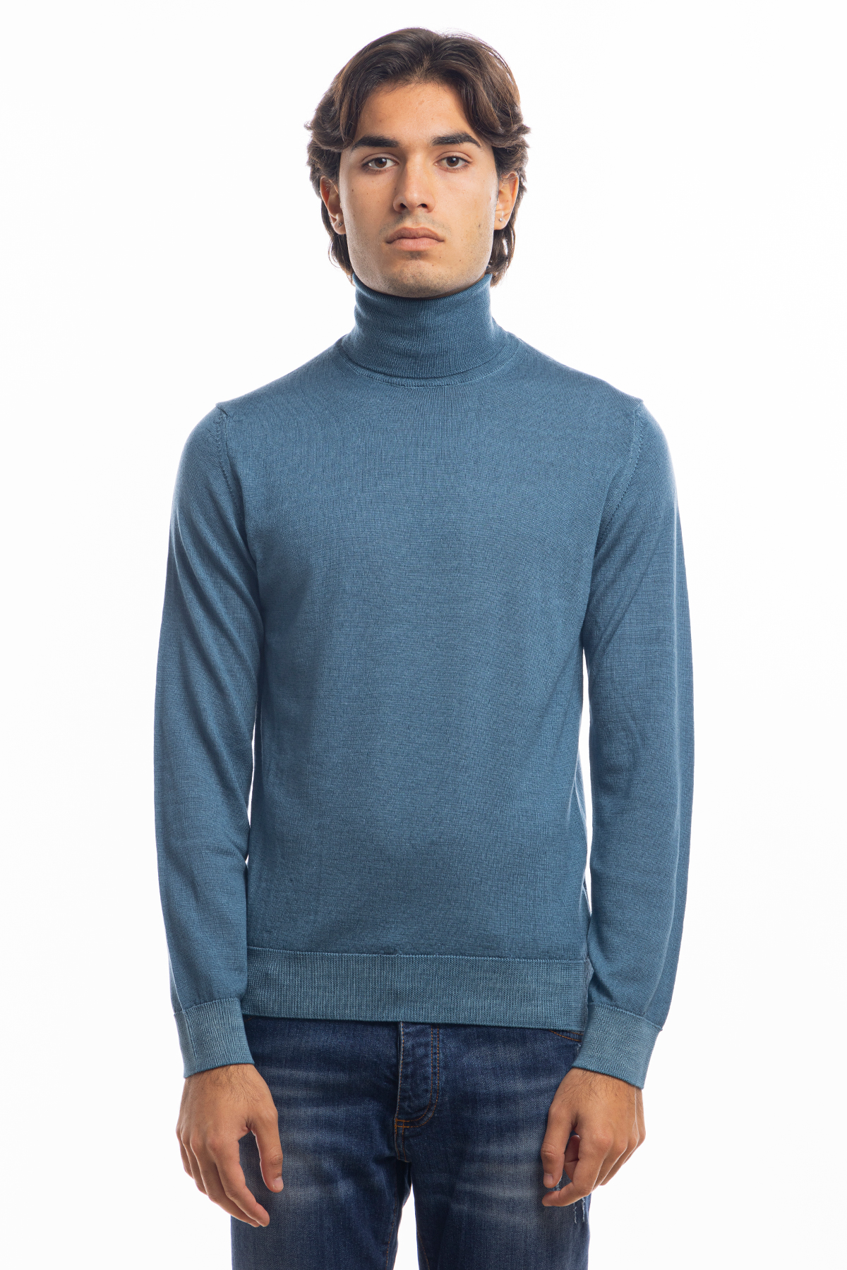 Maglione da uomo collo alto color petrolio in lana merinos 100% maniche lunghe effetto stone wash Carillo Moda | Abbigliamento uomo e donna, scarpe e accessori