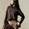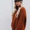 Cardigan Maglia Top Pullover Donna Morbido Maglione Marrone Scollato 41576