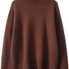 Cardigan Maglia Top Pullover Donna Morbido Maglione Marrone Scollato 41576