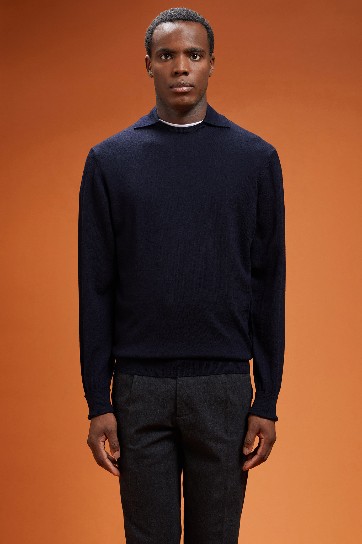 Maglia uomo girocollo con collo polo 100% lana merino extrafine regular fit