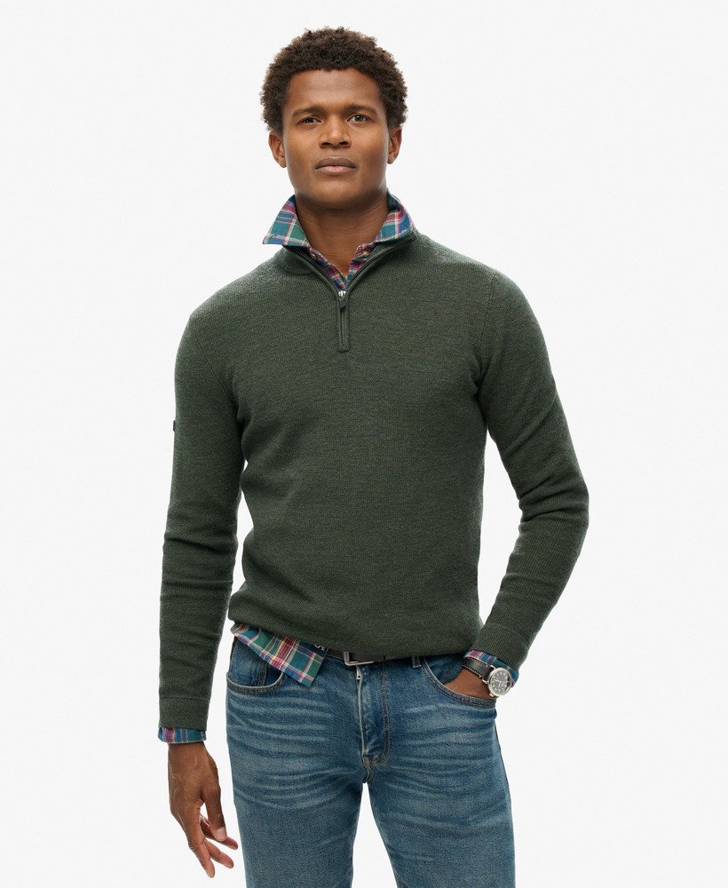 Maglione in lana merino con mezza zipdark moss marl da Uomo | Superdry IT