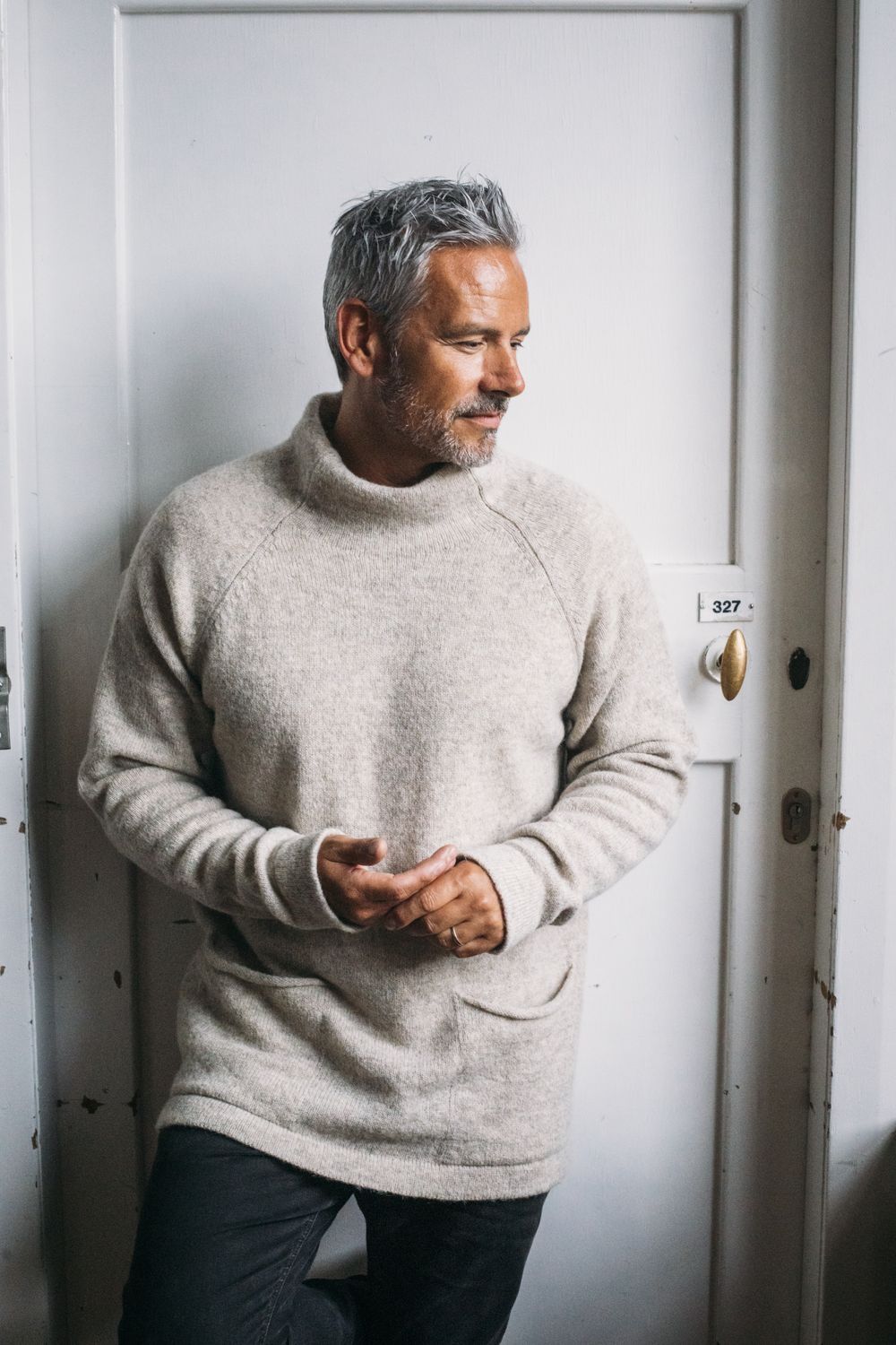 Maglione a collo alto con tasche Herd Raglan uomo in lana inglese
