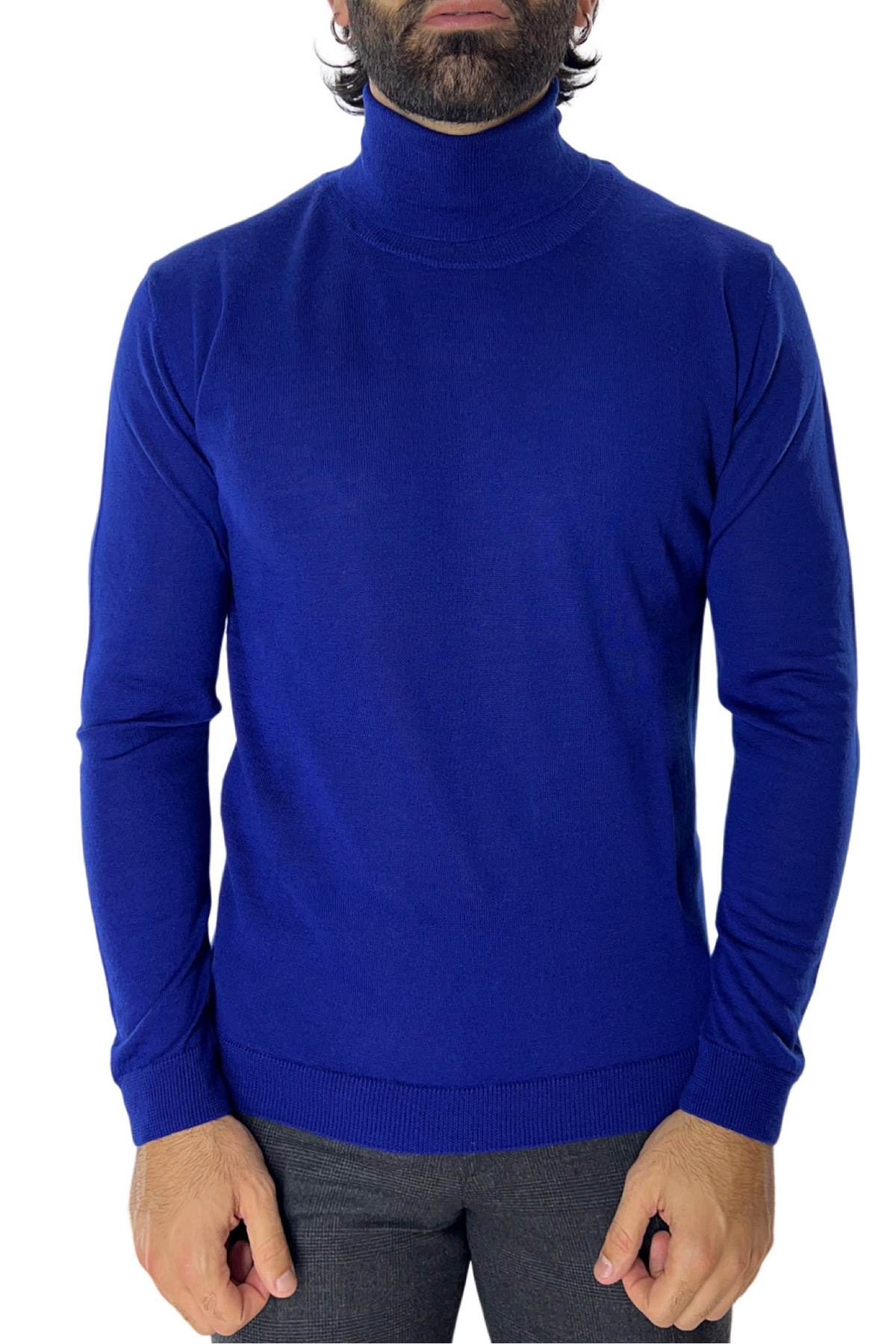 Maglione collo alto uomo royal blu in lana merinos slim fit made in italy tinta unita Carillo Moda | Abbigliamento uomo e donna, scarpe e accessori