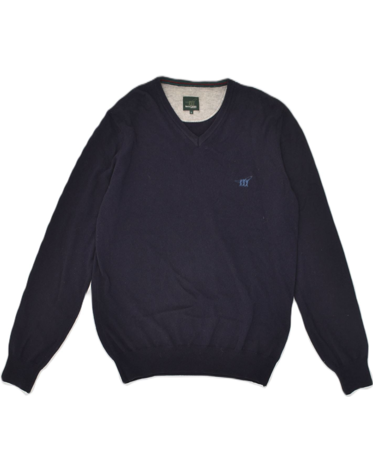 HENRY COTTONS Maglione da uomo con scollo a V grande in cotone blu navy | Abbigliamento vintage e di seconda mano online | Messina Hembry